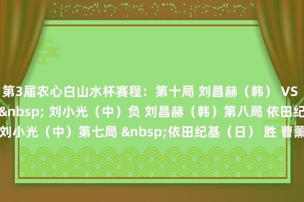 2月4日,第3届农心白山水杯宇宙围棋元老最强战第九局比赛在深圳战罢;韩国队主将刘昌赫完胜中国队刘小光体育集锦,为韩国队接续住夺冠但愿;明日将由日本队主将小林光一攻擂。 第3届农心白山水杯赛程: 第十局 刘昌赫(韩) VS 小林光一(日) 第九局 刘小光(中)负 刘昌赫(韩) 第八局 依田纪基(日) 负 刘小光(中) 第七局 依田纪基(日) 胜 曹薰铉(韩) 第六局 曹薰铉(韩) 胜 芮乃伟(中) 第五局 芮乃伟(中) 胜 山城宏(日) 第四局 芮乃伟(中) 胜 金钟秀(韩) 第三局 芮乃伟(中