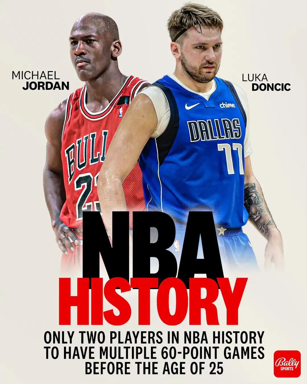 凭证好意思媒Bally Sports的数据统计体育最新信息,东契奇与乔丹为历史唯二在25岁前屡次取得60+的球员。