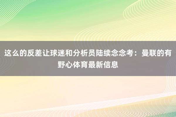 曼联的有野心跋扈?